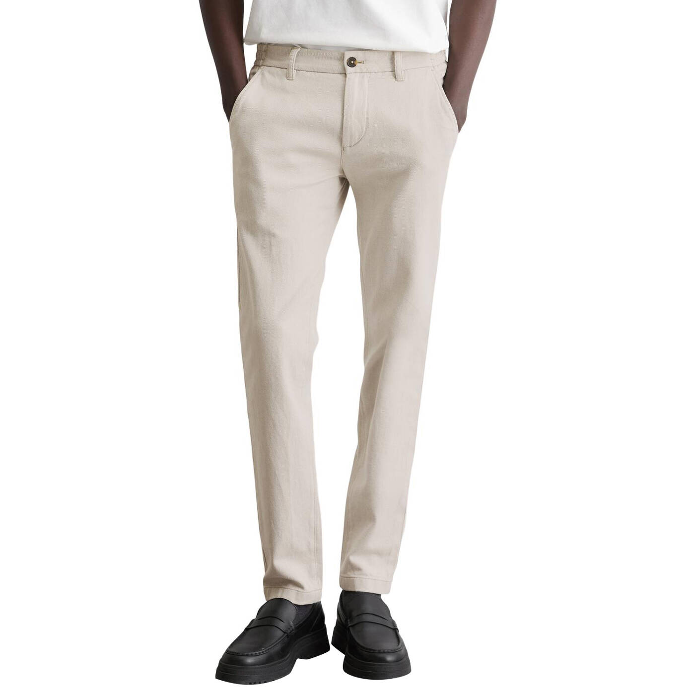 Mit feinem Two-Tone-Zickzack-Muster: Die sportive Chino - Model Stig Jogger - ist im modernen Shaped Fit geschnitten und bietet dank seitlicher, elastischer Einsätze am Bund hohen Tragekomfort und eine perfekte Passform. Klassische Details wie Gürtelschlaufen, ein Knopf-Reißverschluss, seitliche Eingrifftaschen und geknöpfte Paspeltaschen auf dem Gesäß runden das Design ab. Die Qualität: angenehm zu tragender Organic Cotton Stretch aus zertifizierter Bio-Baumwolle mit Elasthan-Anteil. Ideal für verschiedene Anlässe, von entspannten Wochenenden bis hin zu smarten Casual-Events.