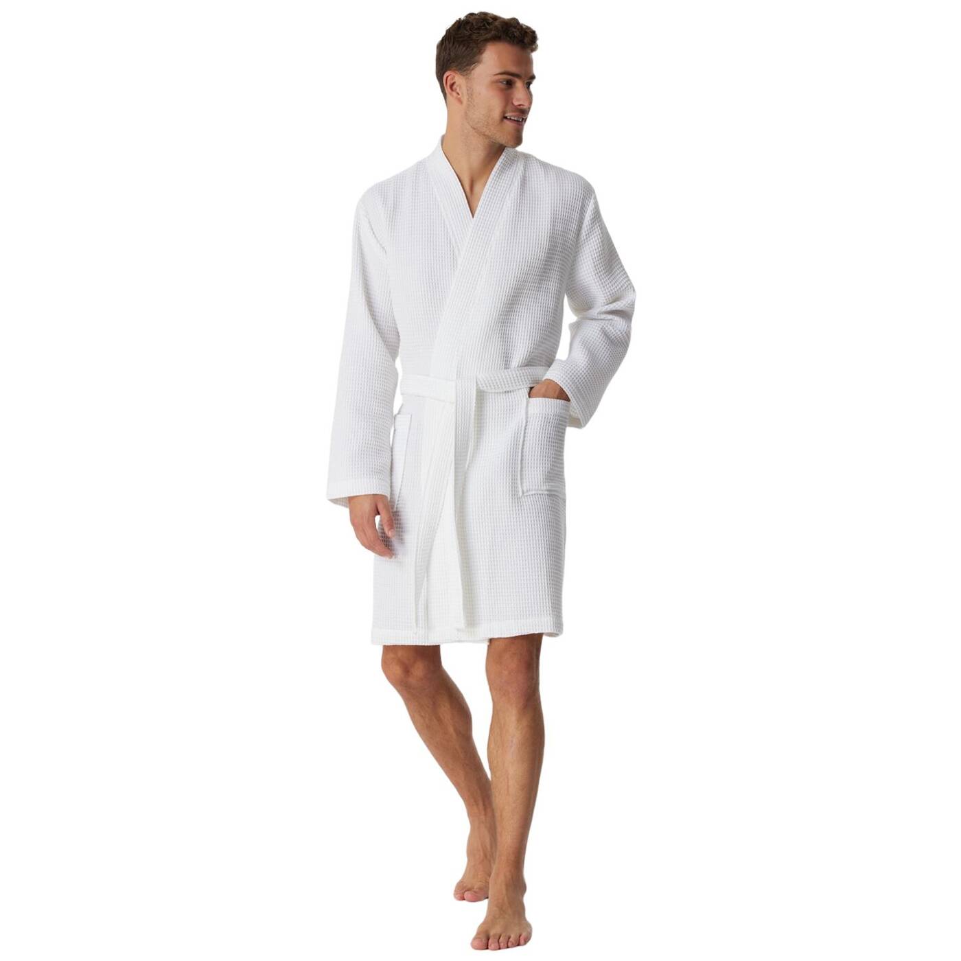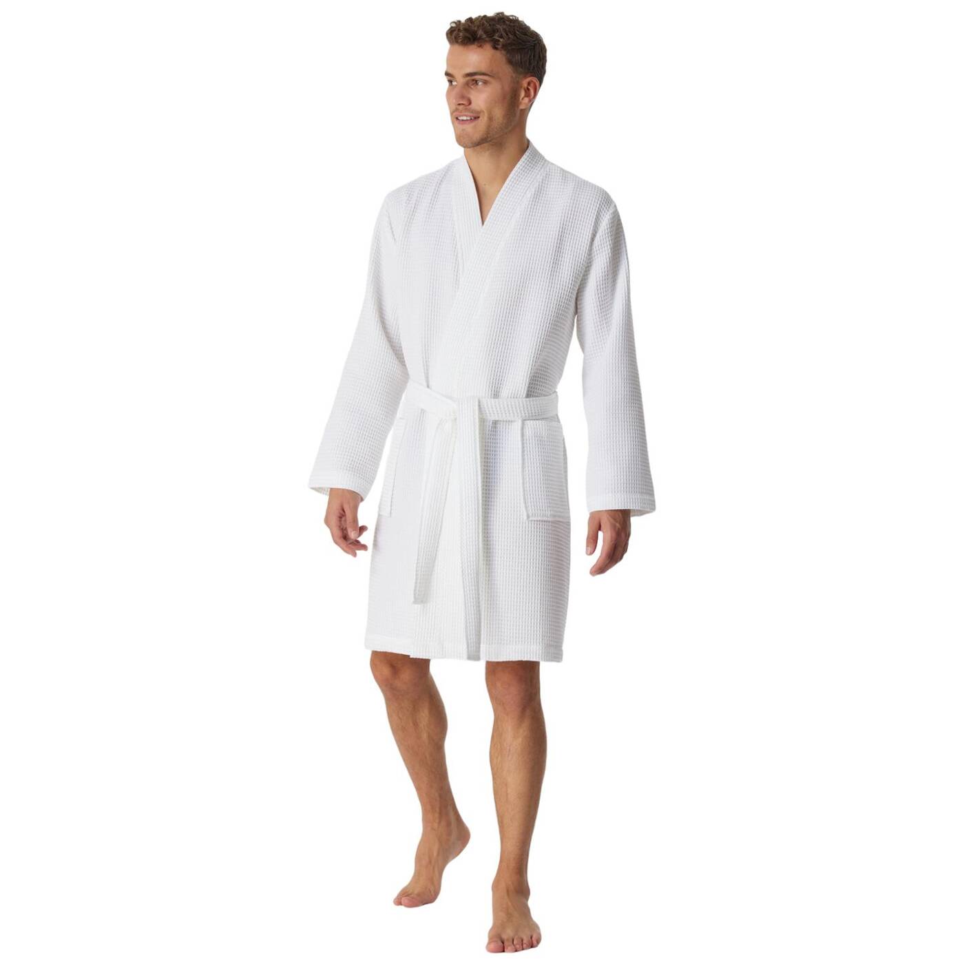 Dieser Herrenbademantel überzeugt durch ein elegantes Design und beste SCHIESSER-Qualität. 100% nachhaltige Baumwolle in Waffelpiqué-Optik, zwei Taschen und das Bindeband schenken dem Morgenmantel einen maskulin-edlen Look. Der Kimono-Schnitt rundet den Stil stimmig ab. Ein Klassiker, der in keinem Bad fehlen darf!